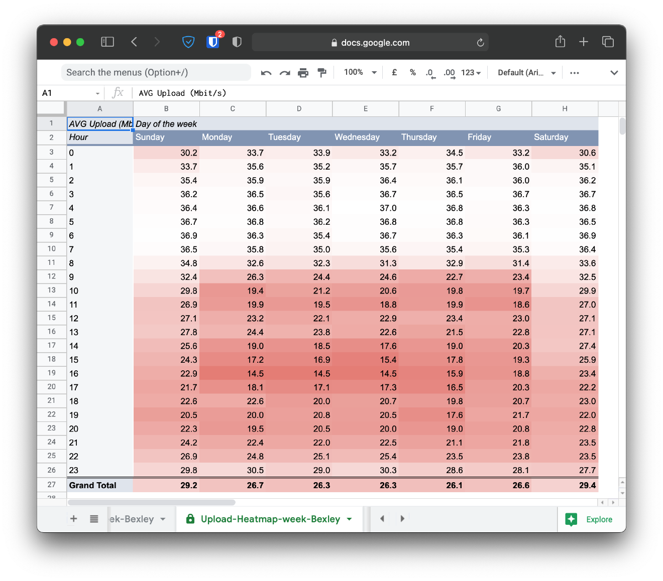 However, this connection actually has far more significant variance, with the most noticeable pattern contained within the upload speedtest (presumably virgin media throttles this channel to support more downloads at peak times). Something also to note is that this environment has ~ 5x more devices on the network, which could be a bit of an issue as well.