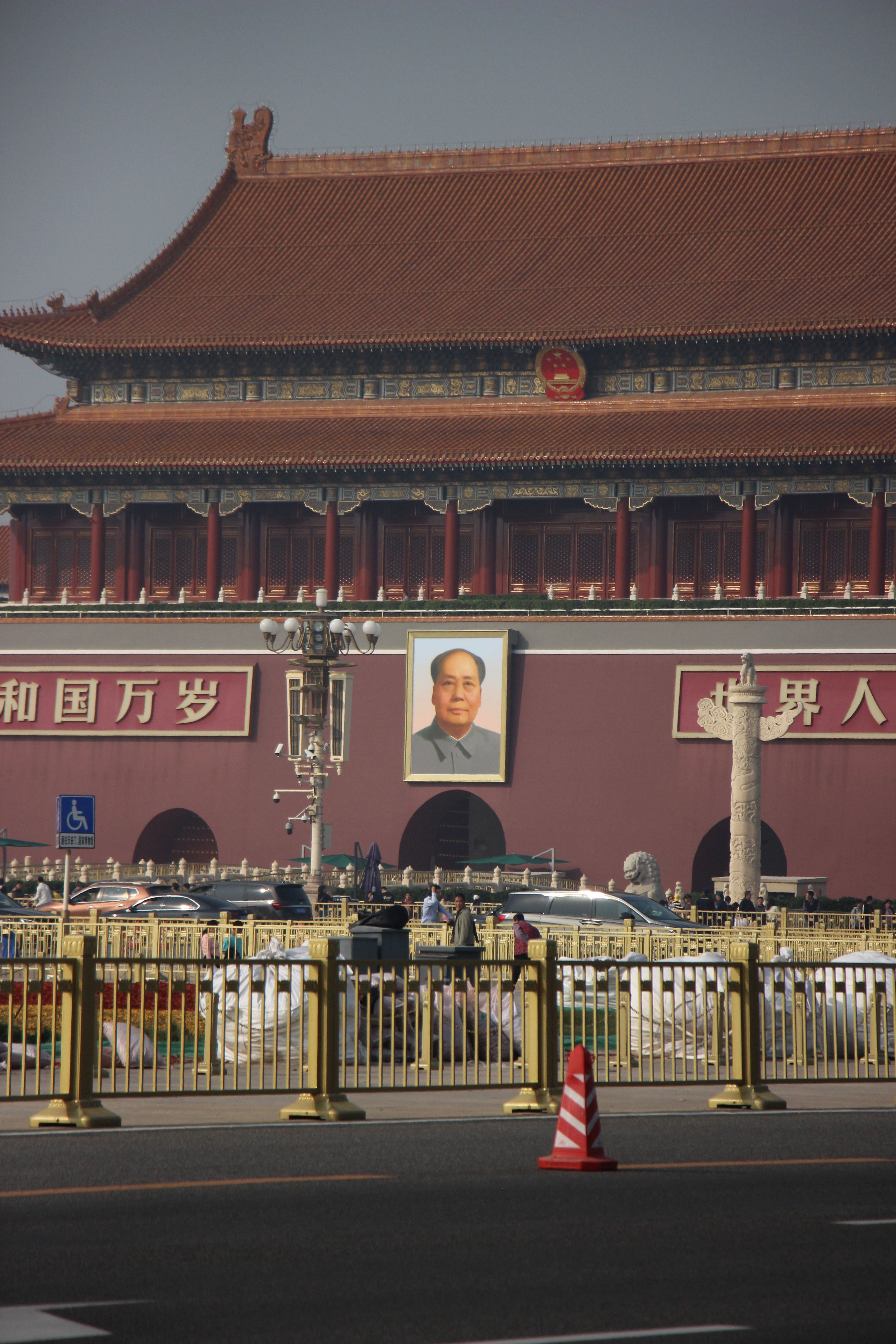 As we cycle back through Tiananmen Square to head back to the flat, I admire the famous smooth face on the wall, and wonder what he’s seen over the years perched up there.
