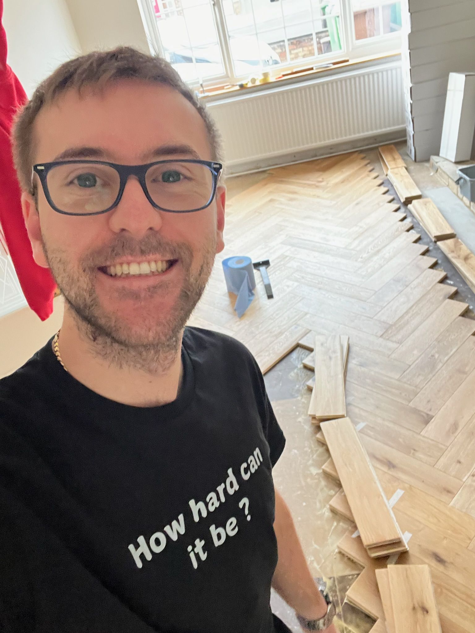 When selecting flooring, I ordered 12 samples from 4 suppliers, I spent hours planning the herringbone sequence to make sure we didn’t get stuck. The kitchen went through 5 different designs, the bathroom went through 6 different designs, and the front fireplace took hours to just measure out.
